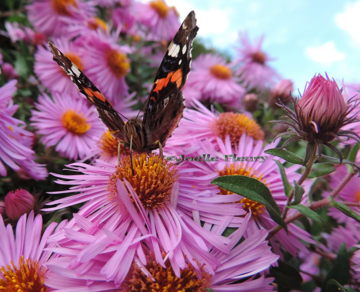 • le papillon vulcain aime les fleurs de mon jardin